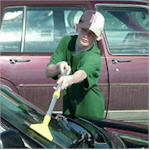 What we do is ask people at a local drive thru (we use the Tim Horton’s) to donate money to have their windshields washed. We have one person at the beginning of the drive thru asking the person if they would like their windshield washed as a donation to Cystic Fibrosis. If they say yes, our volunteer places a pamphlet under their windshield wiper. Once they get to the front of the drive thru and they have a pamphlet under their wiper, our team of two washes their windshield