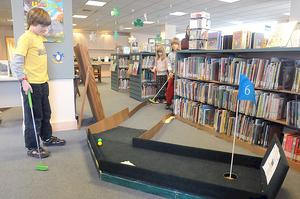 For $5 a person, mini-golfers were able to play an 18-hole course specially designed for libraries, provided by a commercial vendor. She said she had heard about the company last March when she brought her kids to a similar mini golf event at the library in Bourne.