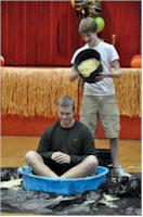During a three-week period, students in first through 12th grade at more than 7,100 schools participate in Pasta for Pennies (sponsored by Olive Gardens) by donating spare change collected in special jars in their classrooms. The top fundraising class at each participating school receives a pasta party from their local Olive Garden restaurant. To kick off local Pasta for Pennies campaigns, Olive Garden restaurants around the country hostslunches for representatives from participating schools. The money collected through Pasta for Pennies directly benefits leukemia, lymphoma and myeloma patients and their families. Contact your local office of The Leukemia & Lymphoma Society for details. As you can see from the photos below, some schools add a little fun by dumping pasta on volunteer administrators or even a spaghetti battle.