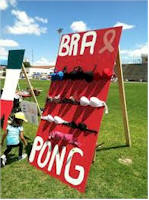 Get Active! Get Bras! Raise money! Bra Pong was a hit at a Relay For Life fundraiser in Three Rivers, Michigan where the line was four deep behind the teams table and it was all about “bra pong.” That’s right, one entire side of this team’s campsite was a wall of bras. For two dollars, you got one chance to hit the ping pong ball into the bra (or three for five dollars). What a great way to have fun while raising breast cancer awareness. Bra Pong was a top fundraiser at the event and raised $1,500! You could let participants throw the ball directly into the bras or have a table and require them to bounce the ball into the bras. This has been a hit at Relay For Life Fundraisers but it could be a lot of fun for other groups. Think outside the box.Source: American Cancer Society