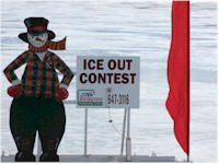 Alternative 2: The Bridgton Community Center’s annual fundraiser on Moose Pond has a new mascot this year. IC is a colorful snowman that is highly visible as you cross the causeway and will determine when ice out comes to the Pond. Entrants can try to win one-half of the net proceeds by predicting the correct date. Tickets are available at a number of locations around Bridgton including Beth’s Kitchen Cafe. For complete contest rules and previous ice out dates, please contact the Bridgton Community Center.
